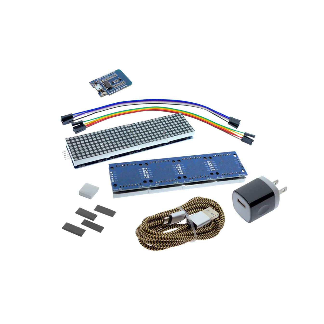 We collected all the parts to build the HackMakeMod Subscriber Counter!
